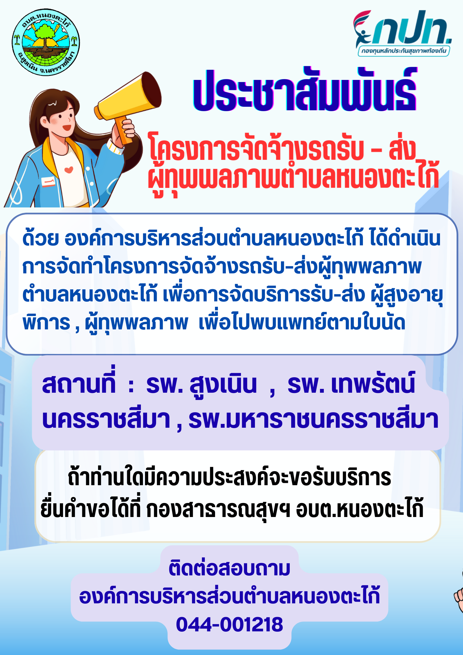 โครงการจัดจ้างรถรับ ส่ง ผู้ทุพพลภาพ ตำบลหนองตะไก...